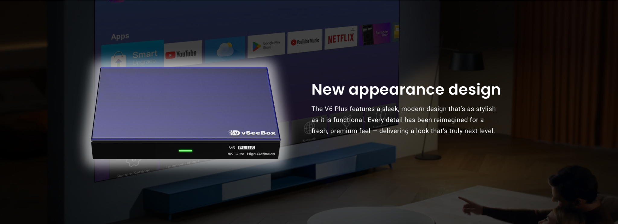 Cut the cord and step into the future of entertainment with the V6 Plus VSeeBox — the newest and most powerful model yet. Built on advanced Android TV technology, the V6 Plus delivers lightning-fast performance, stunning visuals, and endless content with Zero monthly fees. Whether you’re relaxing at home or streaming on the road, enjoy premium entertainment anytime, anywhere, with the most advanced VSeeBox experience available.